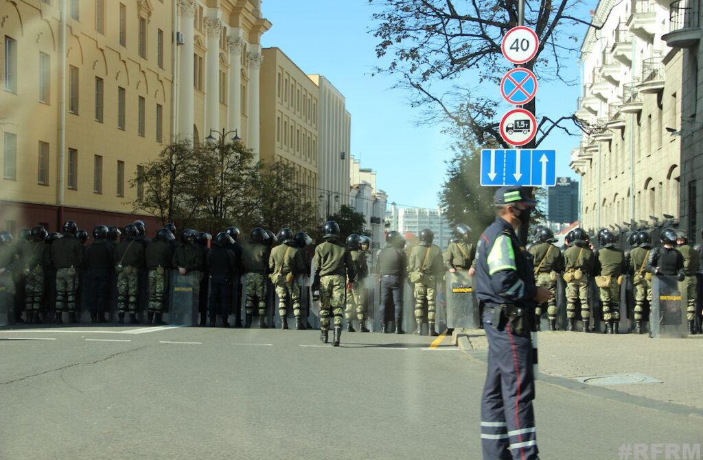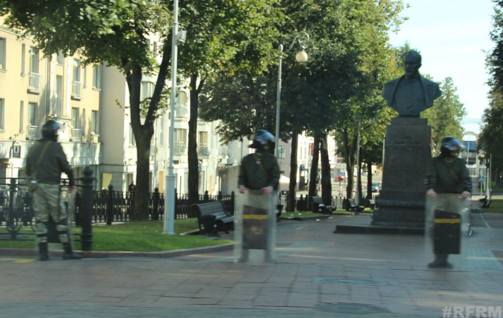 Около 12:00. В районе Стеллы замечена колонна водометов и спецавтомобилей системы «Рубеж». Наблюдаются усиления в районе Стелы, Октябрьской площади и Площади Победы. Ко Дворцу независимости направилась колонна БТР.