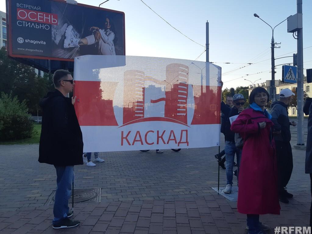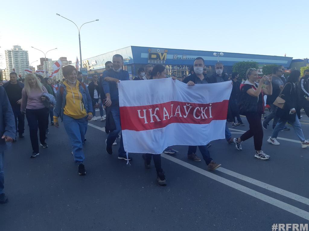 15:54. В районе Стелы и проспекта Победителей сейчас десятки тысяч человек. По улице Cаперов в сторону перекрестка с улицы Тимирязева двинулась большая колонна со щитами, 500-600 человек. На улице Тимирязева возле завода «Атлант» перед улицей Саперов усиление и колючая проволока.