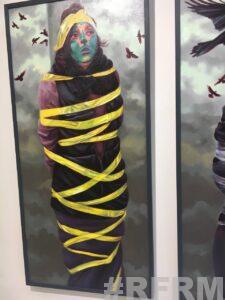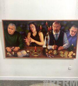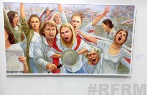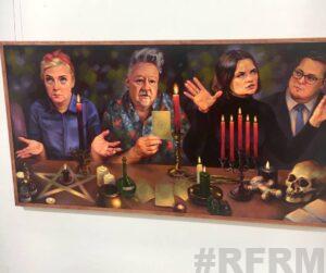 В частности, в реалистичной манере на одной из картин триптиха художница изображает Светлану Тихановскую и лидеров новой оппозиции за оккультным столом: Светлана Тихановская — колдует, а, скажем, Николай Халезин раскладывает карты таро…