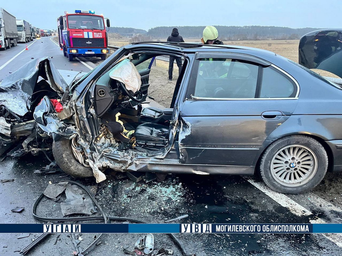 Трагедия произошла сегодня около 8:20 на 43-ом километре М-15 кольцевой дороги вокруг Могилева. 43-летний житель Горок за рулем Renault выехал на встречную полосу, где столкнулся с BMW.