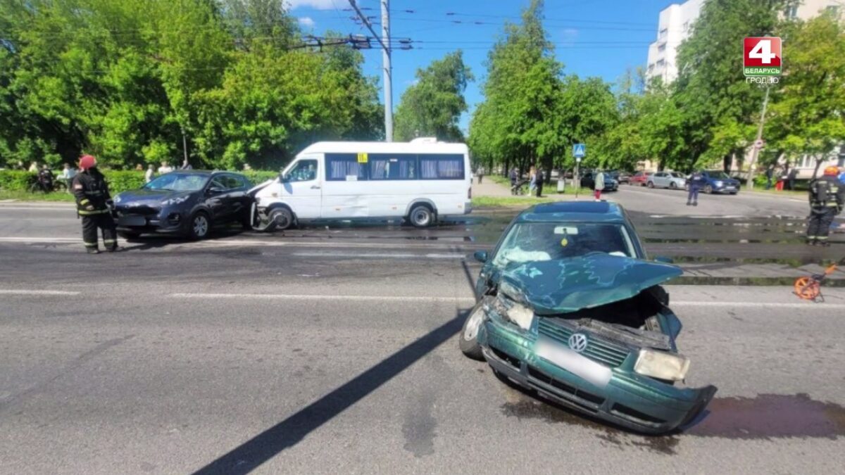 20 мая на перекрестке улиц Советских пограничников и Гагарина в Гродно столкнулись маршрутка и легковой автомобиль.