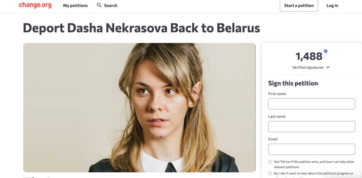 Мы, ніжэйпадпісаныя, заклікаем урад ЗША таксама дэпартаваць іх дзяцей, нават калі яны з’яўляюцца грамадзянамі Злучаных Штатаў Амерыкі, і пакорліва просім, каб першая дэпартацыя была сімвалічнай — дэпартацыяй невялікай інтэрнэт-знакамітасці Дашы Някрасавай», — абураюцца аўтары.