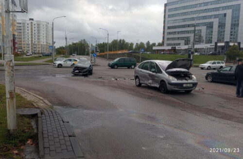 Сегодня в Бресте из-за несоблюдения ПДД столкнулись две легковушки, сообщает пресс-служба ГАИ УВД Брестского