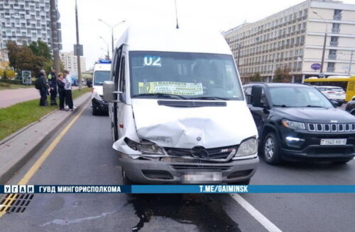 Сегодня в Минске на пересечении проспекта Машерова с улицей Кропоткина маршрутка влетела в легковое авто