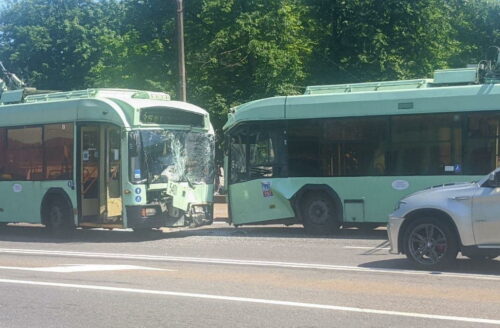 Сегодня на улице Ваупшасова в Минске столкнулись два троллейбуса, пишет @cpbelarus . По информации очевидцев