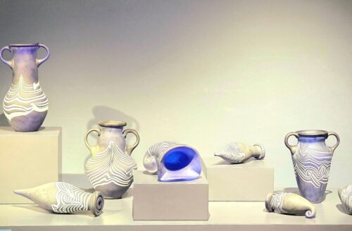 На выставе шкла ў Нацыянальным мастацкім музеі «Васільковае трымценне» дэманструюць каля 30 дэкаратыўных