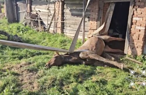 В деревне Юнцевщина Дзержинского района конь провалился в погреб. Хозяин вызвал спасателей, передает