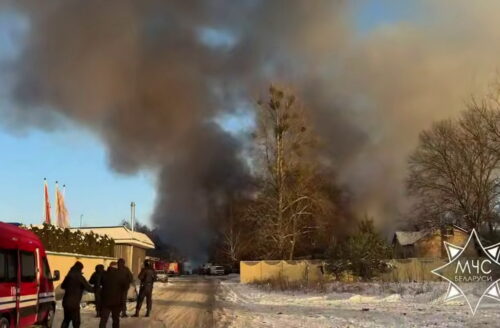 Ратавальнікі працуюць па паведамленні аб загаранні ў складскім будынку ў Брэсце на вуліцы Пісьменніка Смірнова.