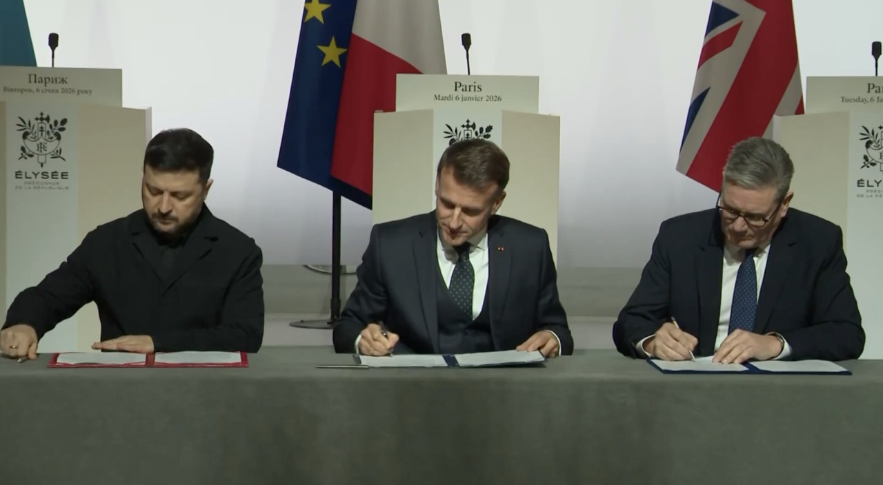 Прэзідэнт Украіны Уладзімір Зяленскі, прэзідэнт Францыі Эманюэль Макрон і прэм’ер-міністр Вялікабрытаніі Кір Стармер падпісалі дэкларацыю аб намерах адносна разгортвання шматнацыянальных сіл для падтрымкі абароны, аднаўлення і стратэгічнай устойлівасці Украіны. Дакумент падпісаны сёння ў Парыжы па выніках сустрэчы «кааліцыі жадаючых».