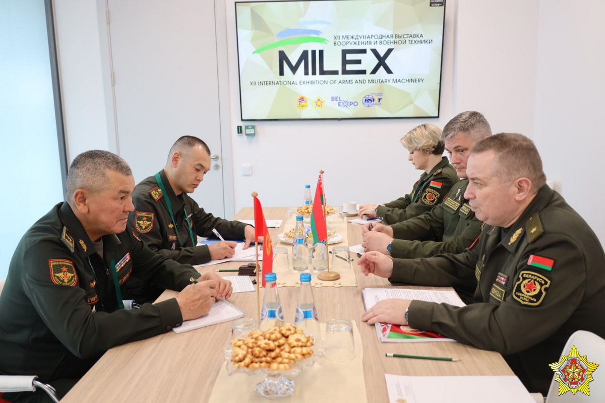 Начальник Департамента международного военного сотрудничества – помощник министра обороны по вопросам международного военного сотрудничества Валерий Ревенко втретился с первым заместителем министра обороны Кыргызстана Эрлисом Тердикбаевым. Встреча прошла на полях выставки вооружения и военной техники MILEX, сообщает пресс-служба беларусского оборонного ведомства.