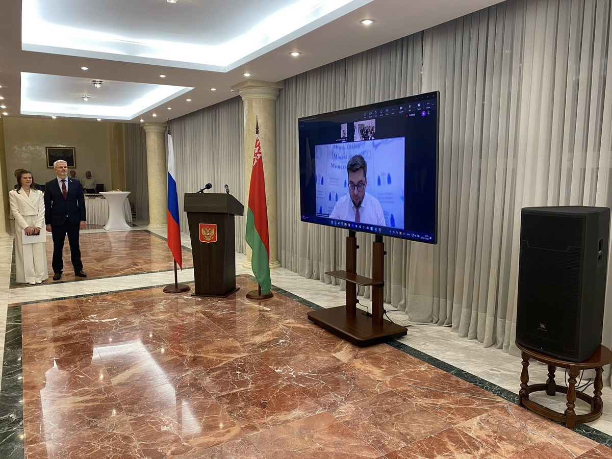 С докладами выступили Временный поверенный Беларуси в Бельгии Сергей Панасюк, посол РФ в Бельгии Денис Гончар, а также по видеосвязи — руководитель Совета по международным отношениям «Минский диалог» Евгений Прейгерман и генеральный директор Российского совета по международным делам Иван Тимофеев.