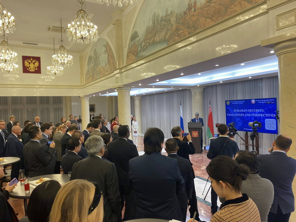 Посольства Беларуси и России в Бельгии провели совместное мероприятие под названием «Евразийская безопасность – вызовы и перспективы», собравшее около 80 участников, включая депутатов Европарламента, дипломатов и аналитиков из стран Африки, Ближнего Востока, Латинской Америки, Европы и Юго-Восточной Азии.
