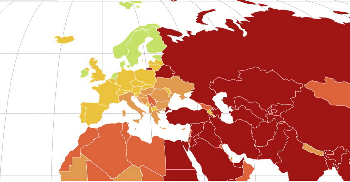 На первом месте в индексе этого года осталась Норвегия. Далее в первой десятке следуют Эстония, Нидерланды, Швеция, Финляндия, Дания, Ирландия, Португалия и Швейцария. Замыкают рейтинг Россия (171 место), Никарагуа, Вьетнам, Туркменистан, Афганистан, Иран, Сирия, Китай, КНДР и Эритрея.