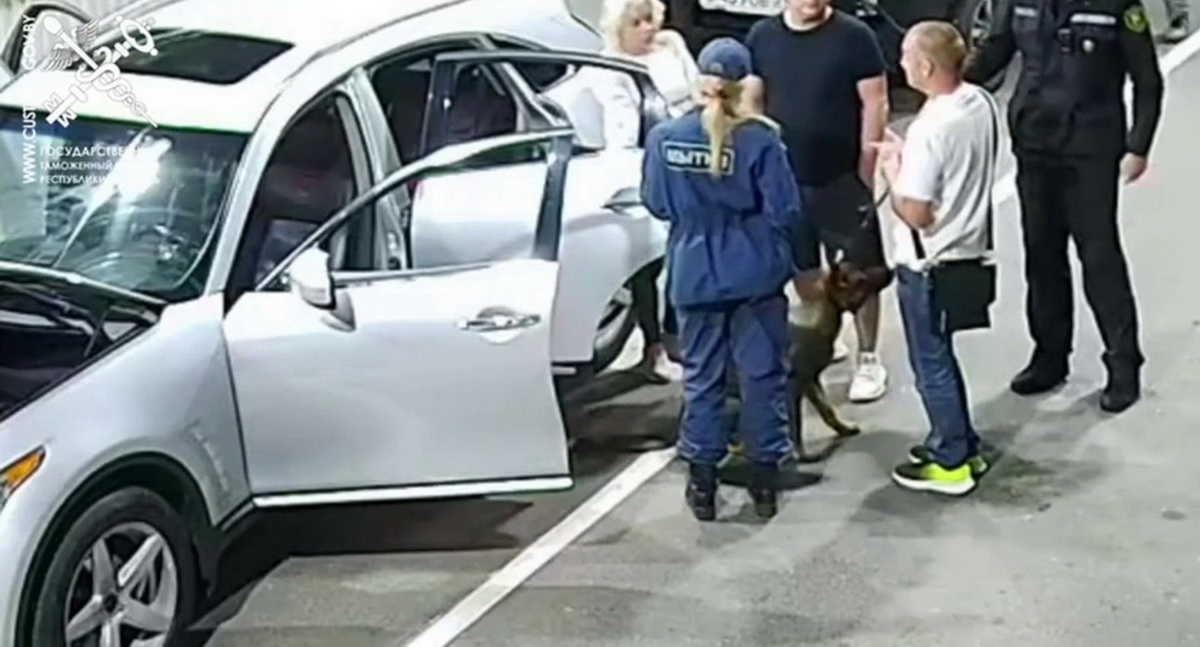 Семейная пара на автомобиле INFINITY для прохождения таможни выбрала зеленый коридор. На возможное наличие у мужчины наркотиков указала своим поведением служебная собака.