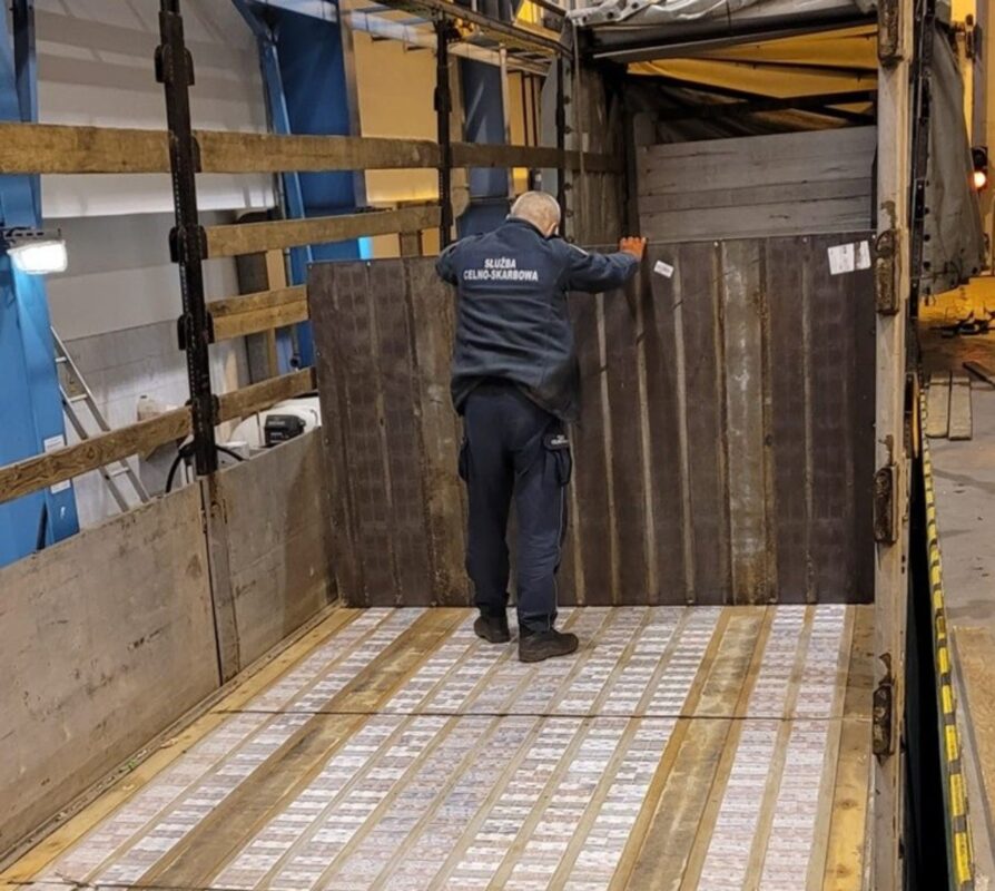 Тайник нашли в полу прицепа. Там были спрятаны 5800 пачек сигарет. Страна производства сигарет не уточняется. Их стоимость оценили в более 100 злотых (почти 26 тысяч долларов).