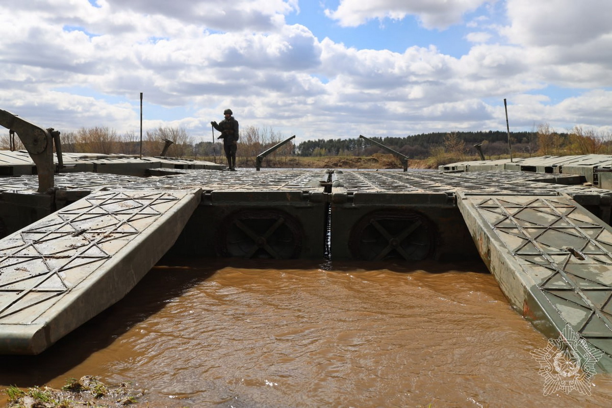 Военнослужащие 188-й гвардейской инженерной бригады провели тактико-специальное занятие по наведению паромной переправы через Днепр, сообщили в Минобороны Беларуси.