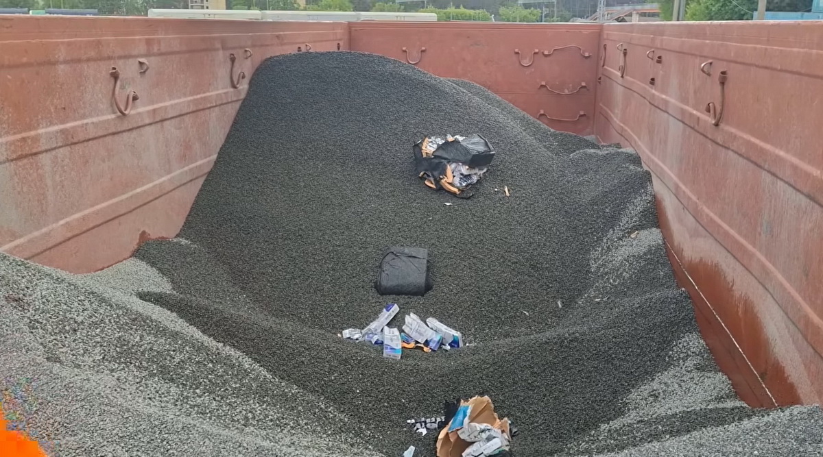 «Так выглядит «транзитная контрабанда»: недавно мы задержали табачные изделия на сумму около 400 тысяч евро, зарытые под щебнем, который по железной дороге перевозился в Россию», — говорится в сообщении к видео.