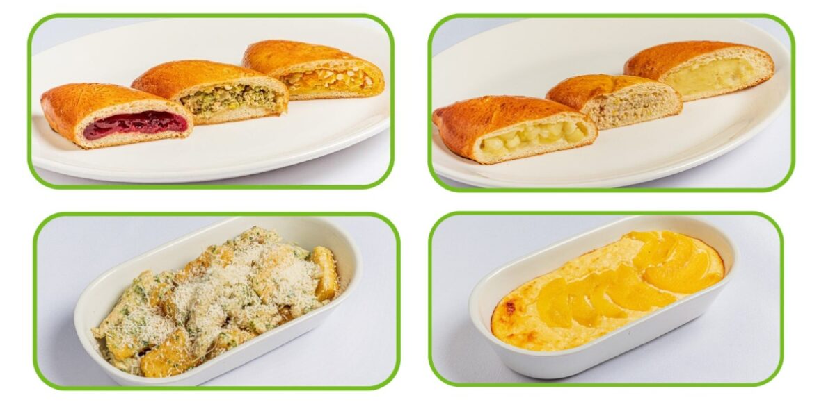 - Сет из пирожков №2: пирожок с картофелем, пирожок с запеченными овощами и курицей, пирожок с яблоком.