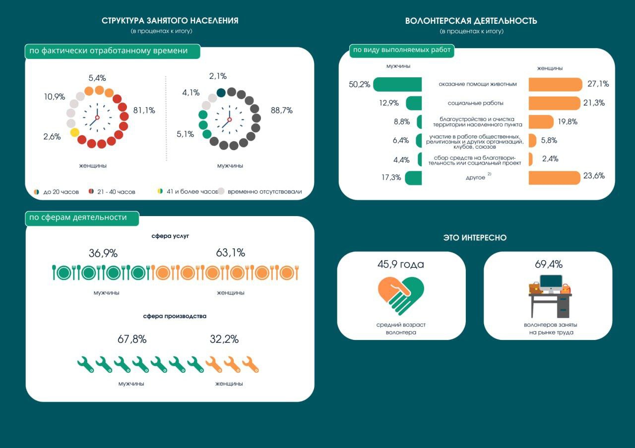 20,3% работающих приходилось на сельское население, а 79,7% — на городское. Средний возраст занятых составил 42,4 года.