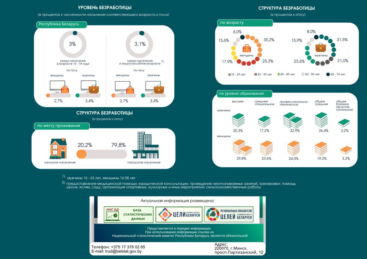 Белстат опубликовал результаты выборочного обследования домашних хозяйств в целях изучения проблем занятости населения за 2024 год. В рамках этого исследования рассчитывается показатель безработицы по методологии Международной организации труда.