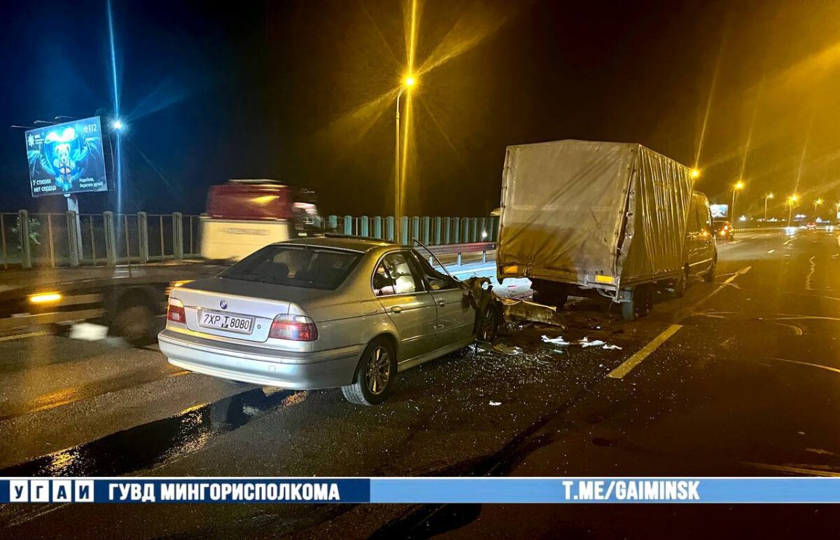 Сегодня ночью на Минской кольцевой автодороге BMW «догнал» Renault с прицепом.