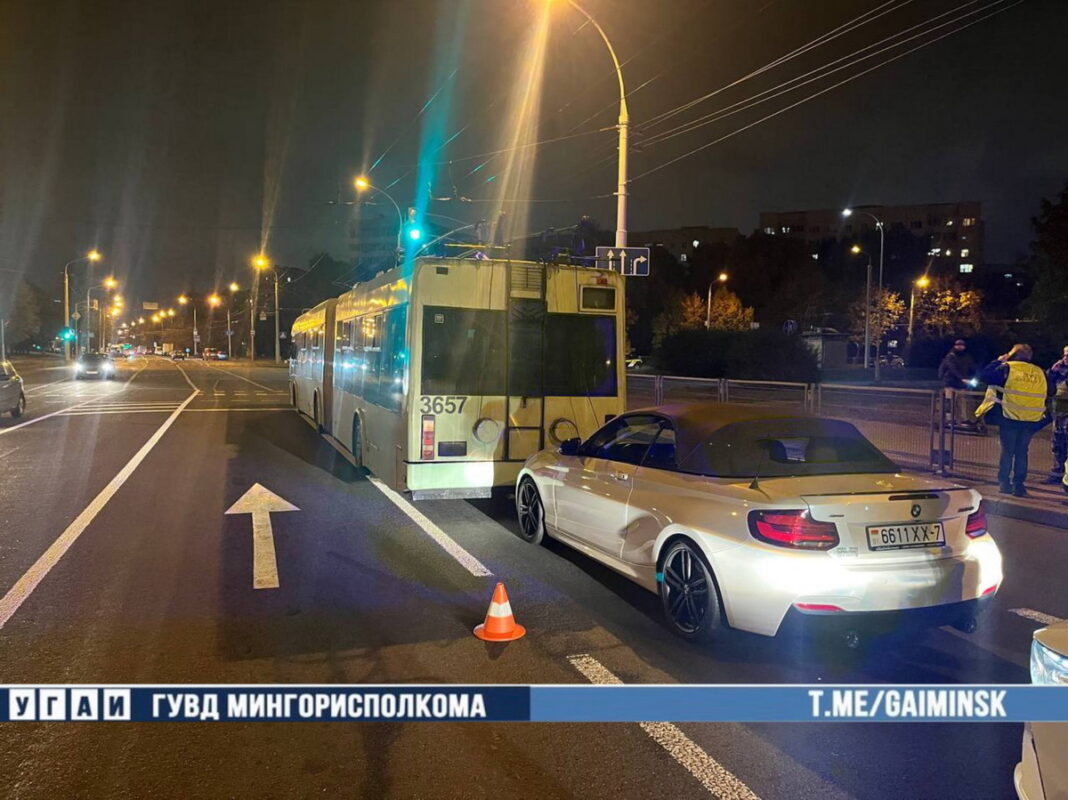BMW сбил водителя троллейбуса на улице Рафиева в Минске, сообщает УГАИ ГУВД Мингорисполкома.
