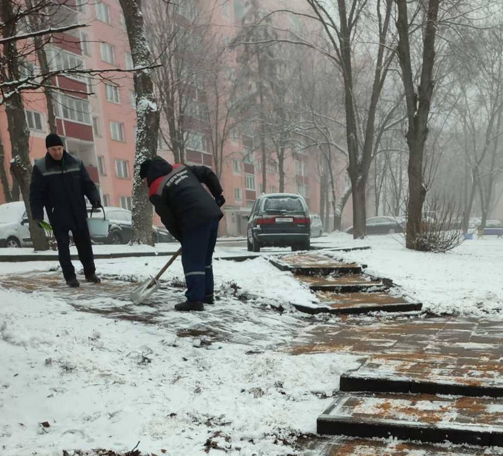 1503 сотрудника Минского городского жилищного хозяйства убирают снег в первый день весны. Придомовые территории также обрабатывают противогололедными средствами.