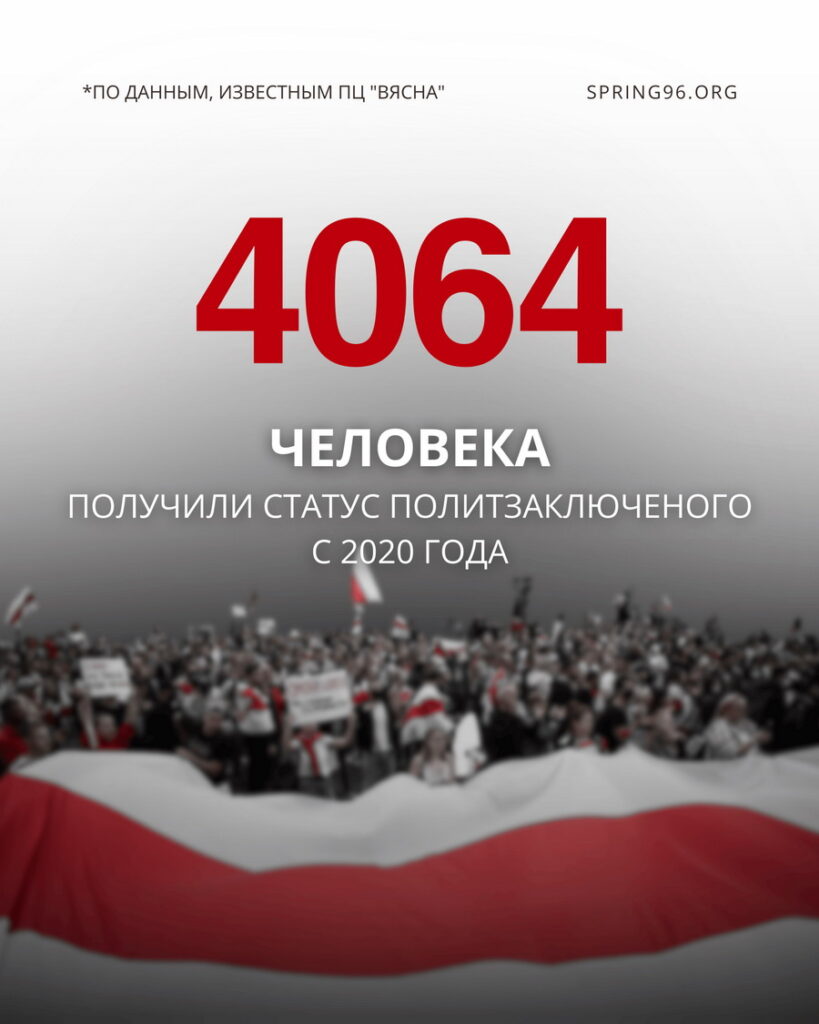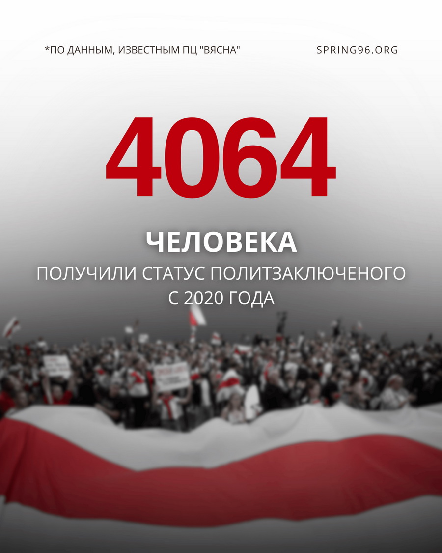 Число политзаключенных за этот период увеличилось в 47 раз — с 25 до 1187 человек. Всего с августа 2020 года статус политзаключенного получили 4064 человека, из которых 776 — женщины.
