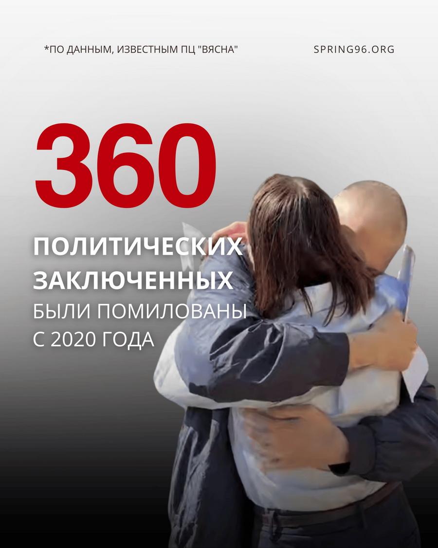 Всего с 2020 года 360 политзаключенных были помилованы, 8 из них были депортированы прямо из колонии, при этом они не имеют другого гражданства, кроме беларусского. Такое «освобождение под условием выезда» правозащитники называют новым инструментом политического давления.