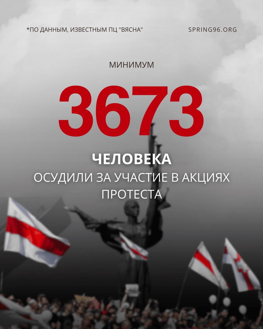 Не менее 3673 человек осуждены за участие в акциях протеста по ч. 2 ст. 293 и ст. 342 Уголовного кодекса. Суды продолжаются до сих пор.