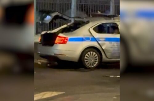 Неизвестный подошел к служебному автомобилю Госавтоинспекции УВД Северо-Восточного округа Москвы и бросил