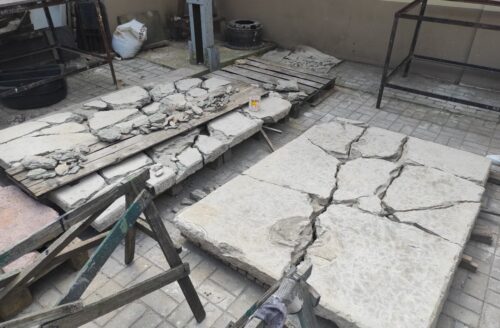 Падчас рэстаўрацыі касцёла Божага Цела ў Нясвіжы будаўнічая тэхніка раструшчыла старыя каменныя надмагіллі