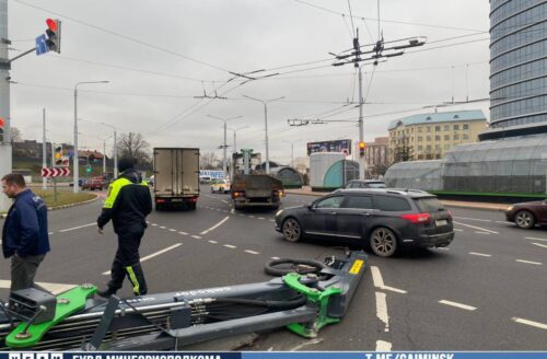 В Минске упал кран на площади Богушевича. Машина перекрыла часть круговой развязки. Как сообщили в УГАИ