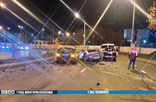 ДТП произошло около 21 часа в Минске на улице Вирской. Столкнулись сразу пять автомобилей. Как сообщило