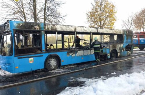 (обновлено) Сегодня утром в районе агрогородка Жемчужный под Барановичами сгорел автобус МАЗ.
