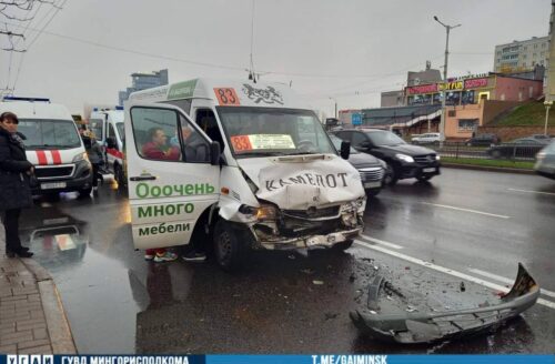 Маршрутка и троллейбус столкнулись сегодня на улице Притыцкого в Минске. ДТП произошло около 16 часов.