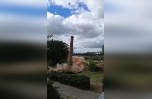 Сегодня в Витебске взорвали трубу котельной. Снос 25-метрового сооружения на улице Буденного произвели