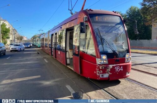 Сегодня в Минске на улице Якуба Коласа столкнулись трамвай и маршрутка. Три пассажира маршрутки были