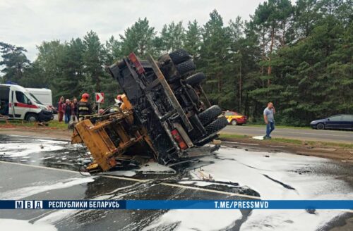 В Солигорском районе произошло ДТП с автокраном. Машина опрокинулась. В результате происшествия погиб пассажир.