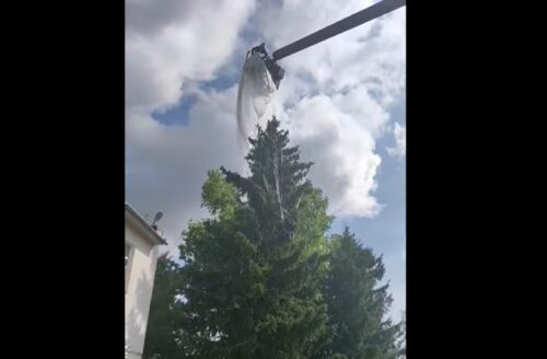 В пригороде Гродно при выполнении прыжка парашютистка застряла в ветвях дерева на высоте около 10 метров.