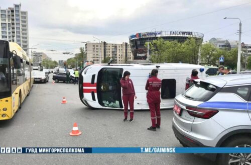 На перекрестке улиц Сурганова и Беды в Минске столкнулись автомобиль скорой помощи и автомобиль Suzuki.
