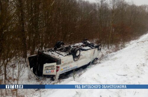 Сегодня днем в Ушачском районе произошло ДТП с маршруткой. Микроавтобус на 32-м км дороги Лепель —