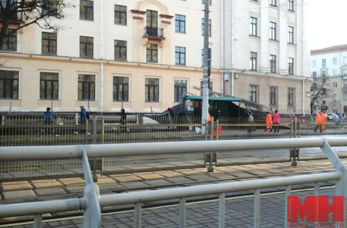 Сильный ветер сегодня опрокинул строительные леса в Минске. Инцидент произошел на проспекте Машерова.