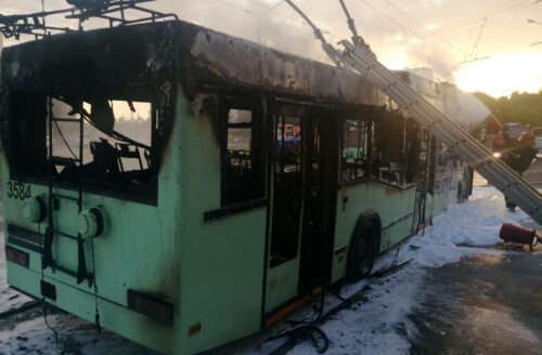 В Минске на диспетчерской станции «Масюковщина» в воскресенье сгорел троллейбус. Как сообщает
