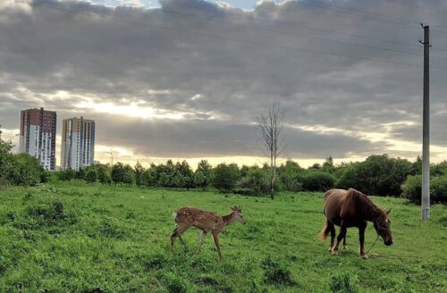 Очередной лесной гость появился в Минске. В районе Лошицы была замечена косуля. Фотографии животного