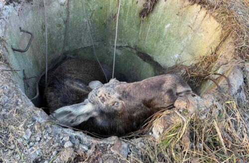 Лось провалился в колодец вблизи агрогородка Вейно в Могилевском районе. Работники МЧС и местные жители