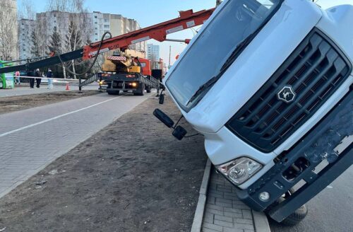 В Минске опрокинулся автоподъемник с рабочим. Мужчина доставлен в больницу. Инцидент произошел вечером