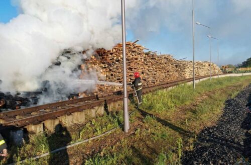 Пожар случился на территории деревообрабатывающего предприятия в Мостах сегодня утром. Спасателей вызвали