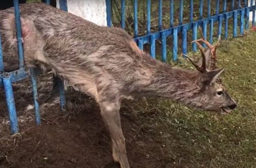 В МЧС позвонил житель Новополоцка и сообщил, что видит с балкона запутавшегося в ограде оленя.