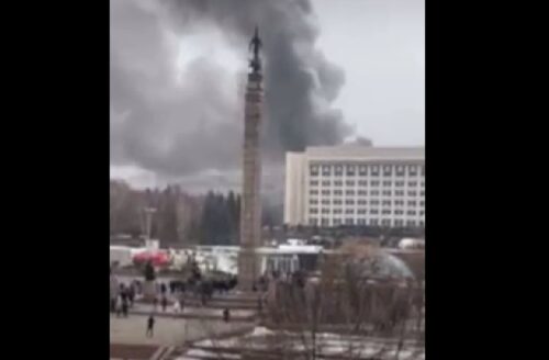 Протестующие захватили здание акимата Алматы. Начался пожар. Горит центральный вход здания, сообщает KazTag.